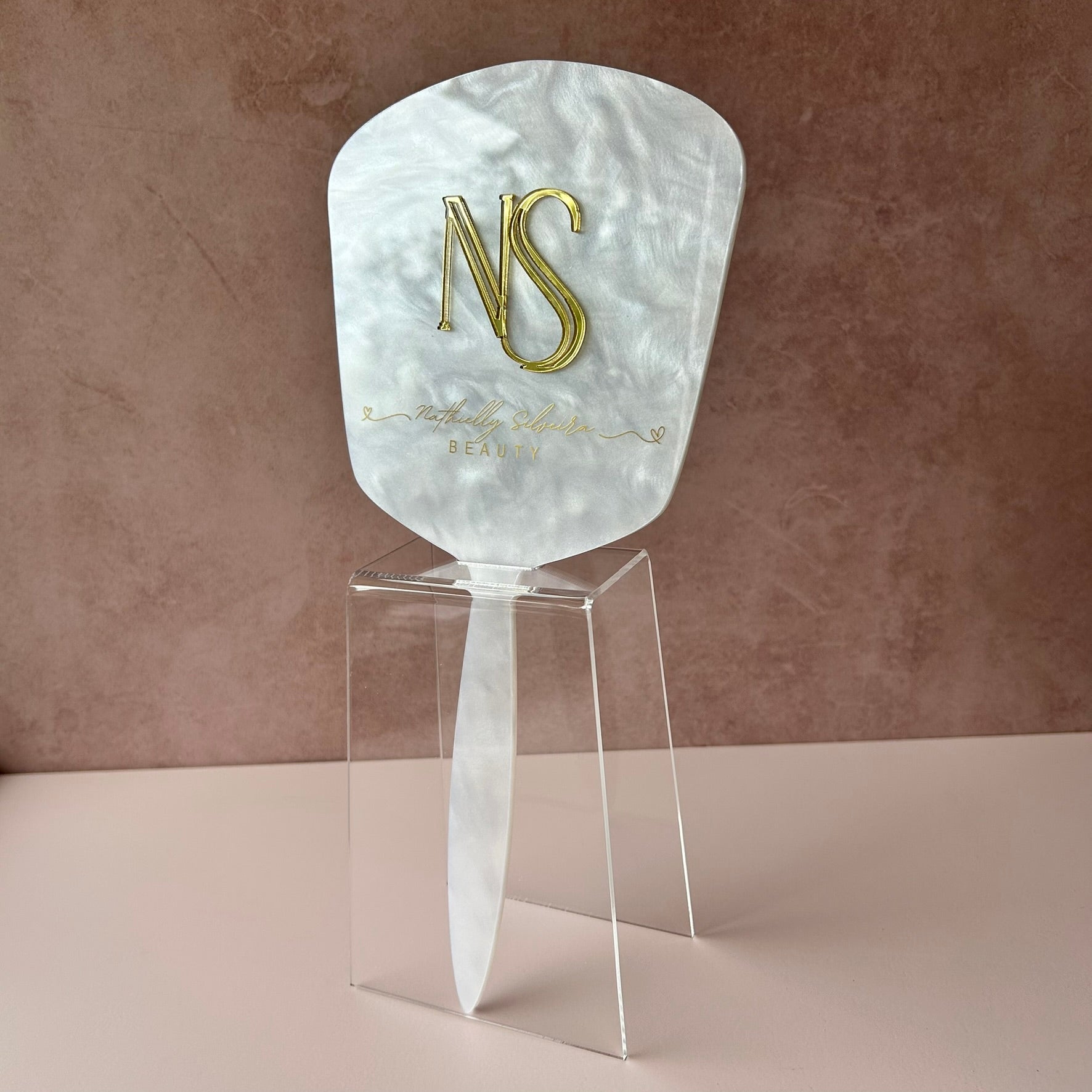 O espelho personalizado em acrílico com suporte é a escolha perfeita para profissionais que buscam agregar estilo e funcionalidade ao ambiente de trabalho. Indicado para clínicas, consultórios e estúdios de beleza.