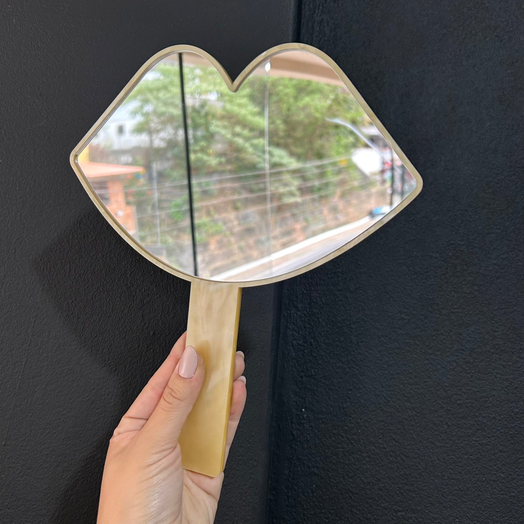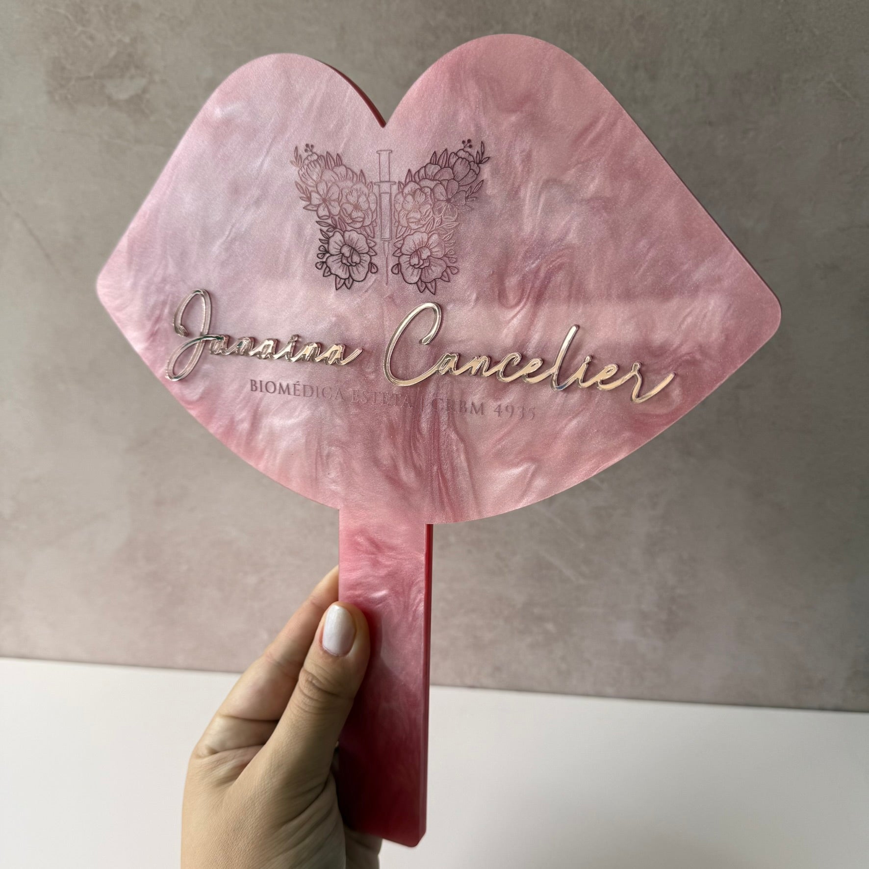 Impressione seus clientes com o espelho personalizado boca duplo luxo com suporte, uma peça que une criatividade, elegância e funcionalidade. Ideal para clínicas, consultórios e estúdios que valorizam cada detalhe da experiência do cliente.