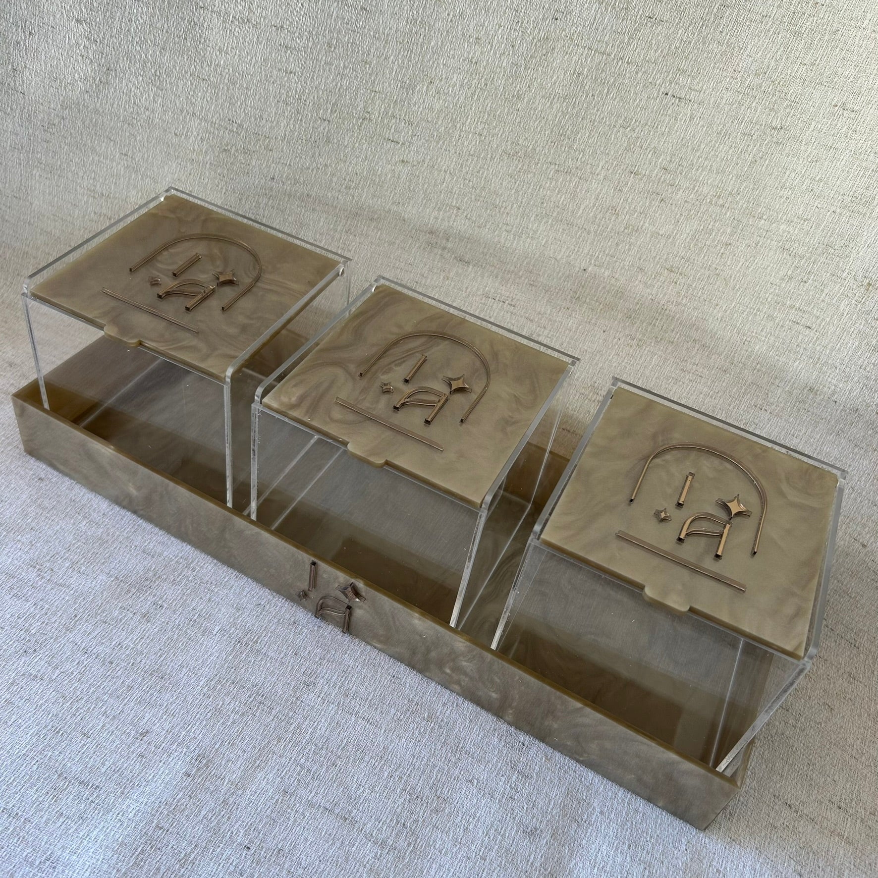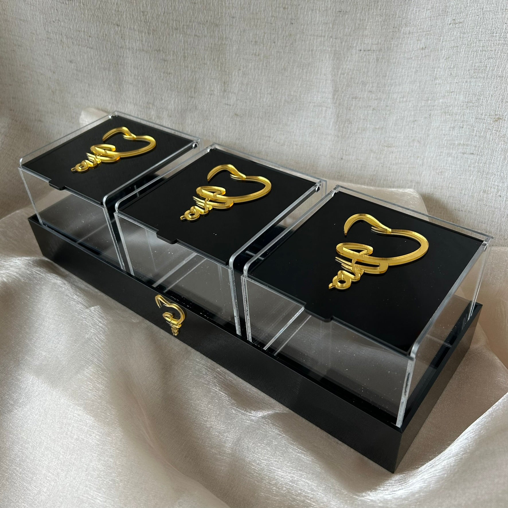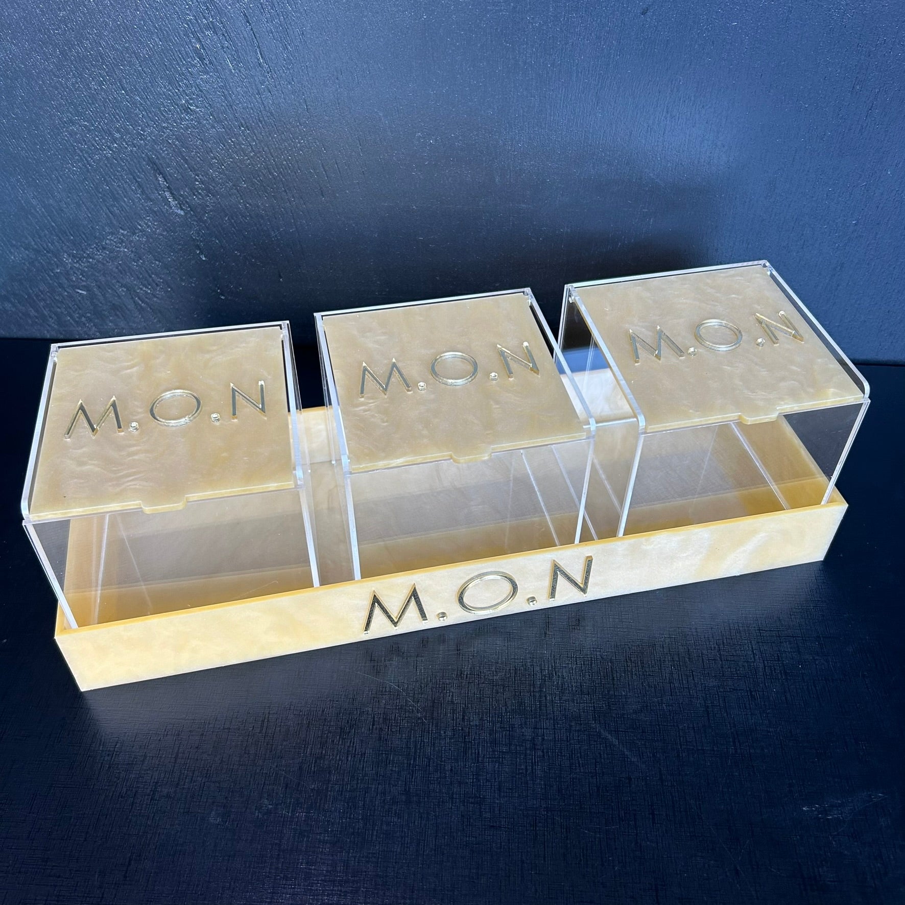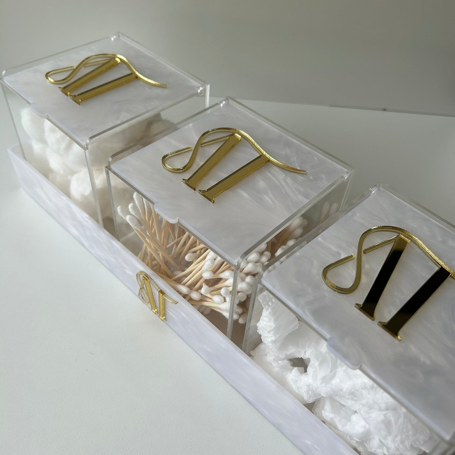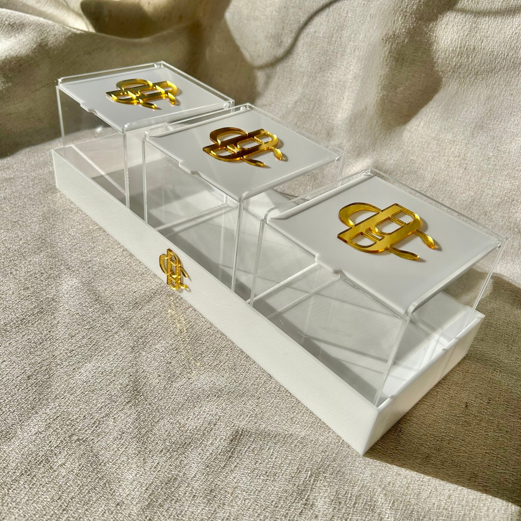 Kit bandeja caixa organizadora acrílico madrepérola personalizada