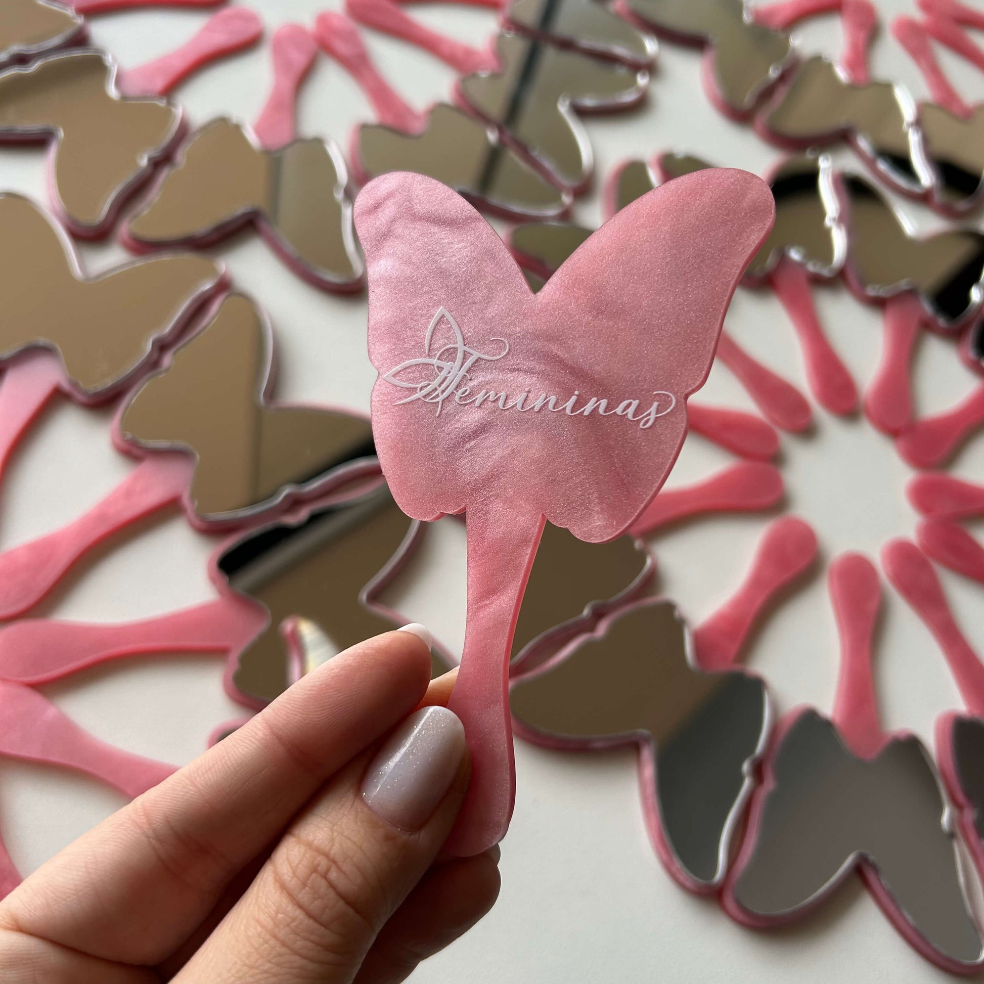 Kit com 10 Espelhos de bolsa MINI BORBOLETA personalizado acrílico cliente mimo