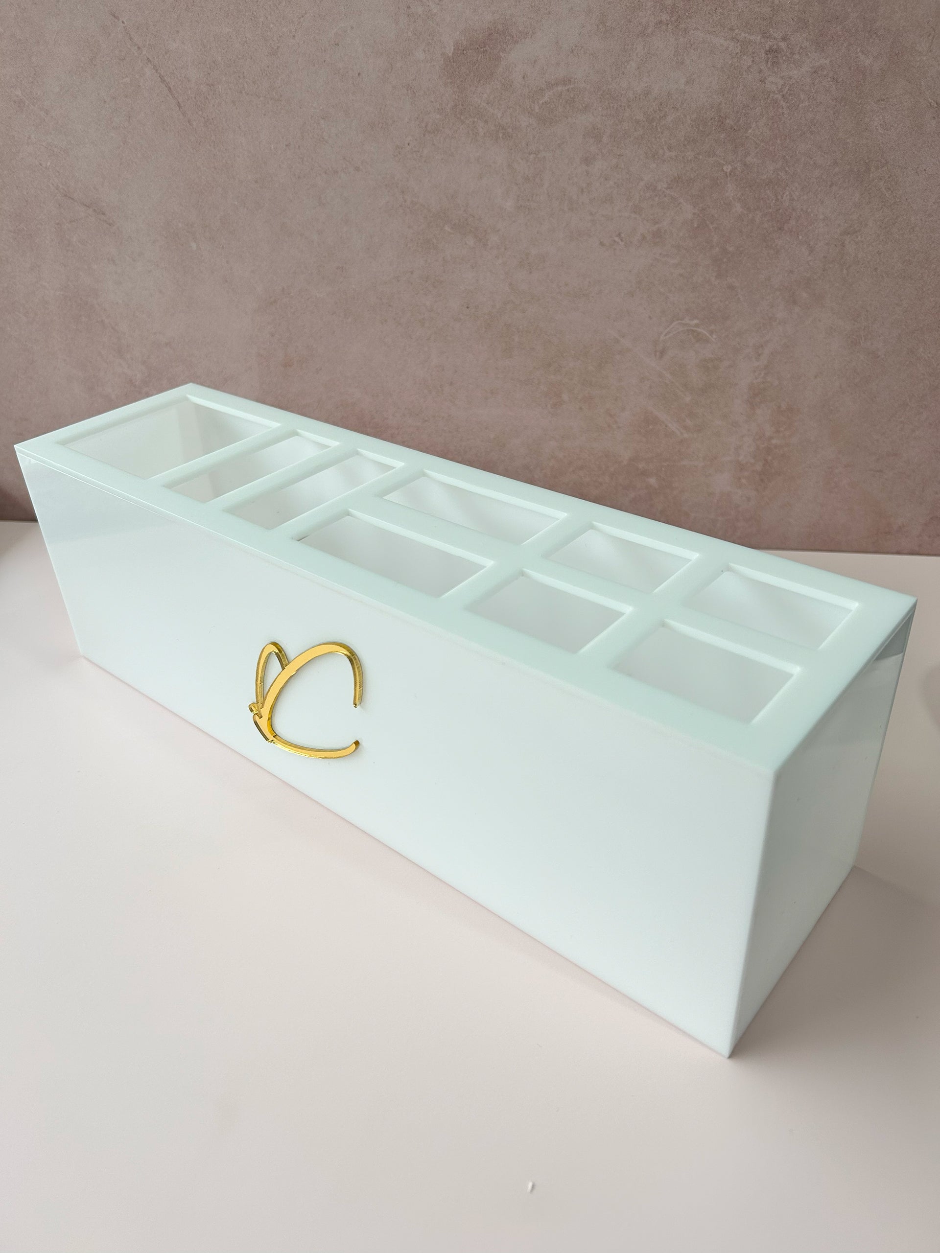 Porta-Pincéis em Acrílico com 9 Divisórias Personalizado para Maquiadoras